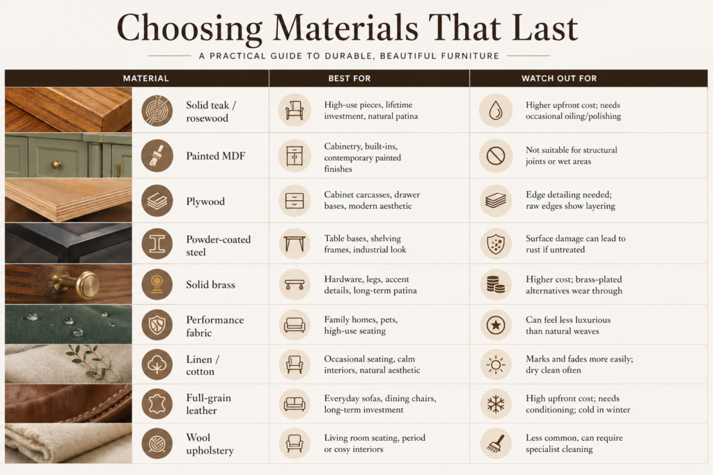 Materials are where furniture decisions go wrong most often — and not in the ways people expect.